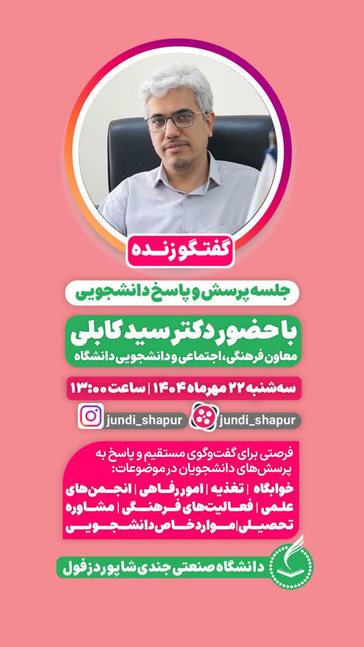 گفتوگوی زنده معاونت فرهنگی، اجتماعی و دانشجویی دانشگاه صنعتی جندی شاپور دزفول با دانشجویان جدیدالورود برگزار میشود.