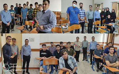 حضور ریاست دانشگاه جندی شاپور دزفول در کلاسهای درس و اهدای شاخه گل به اساتید