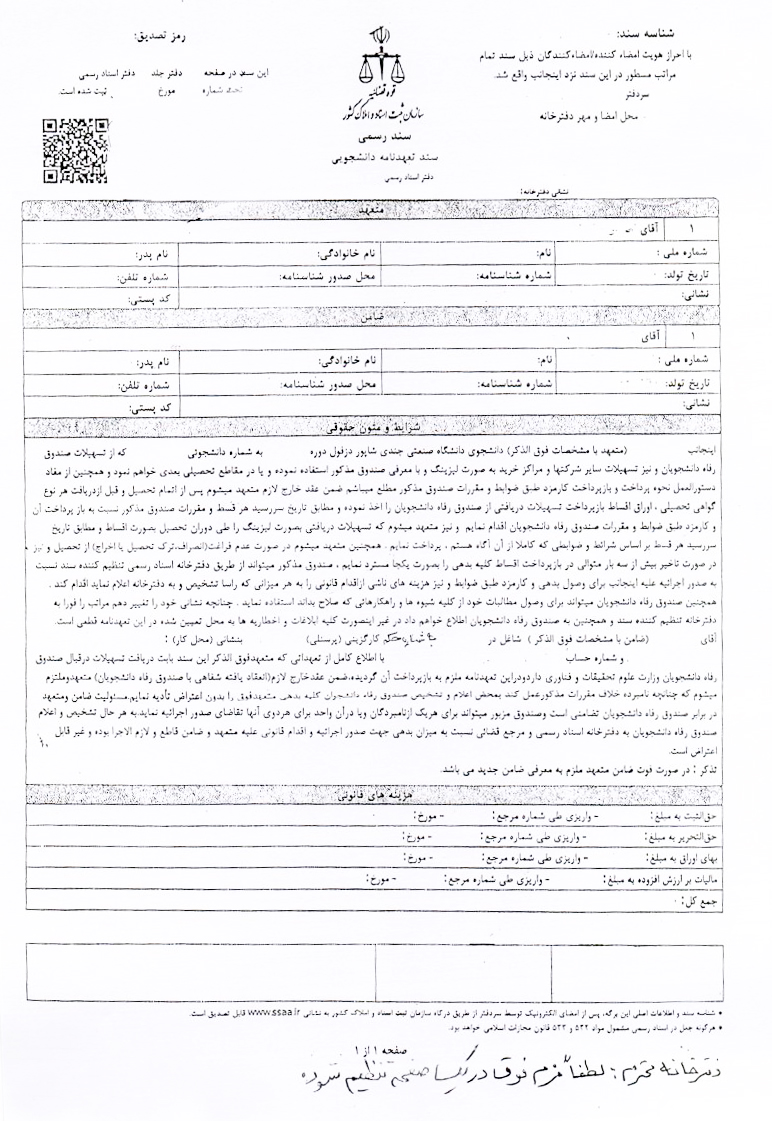 فرم تعهدنامه ثبتی دانلود فایل